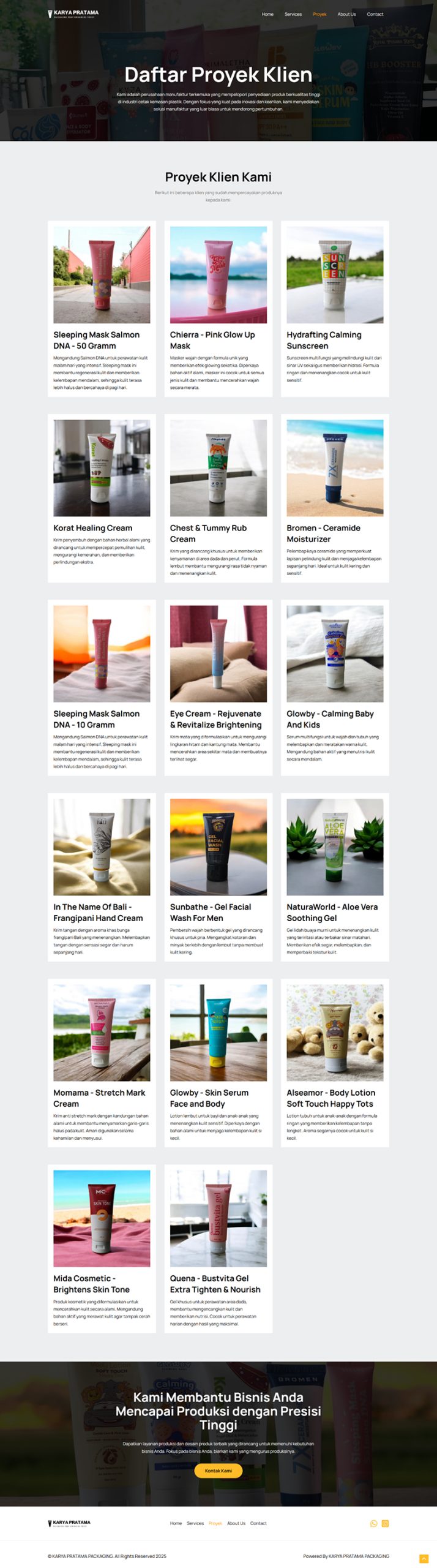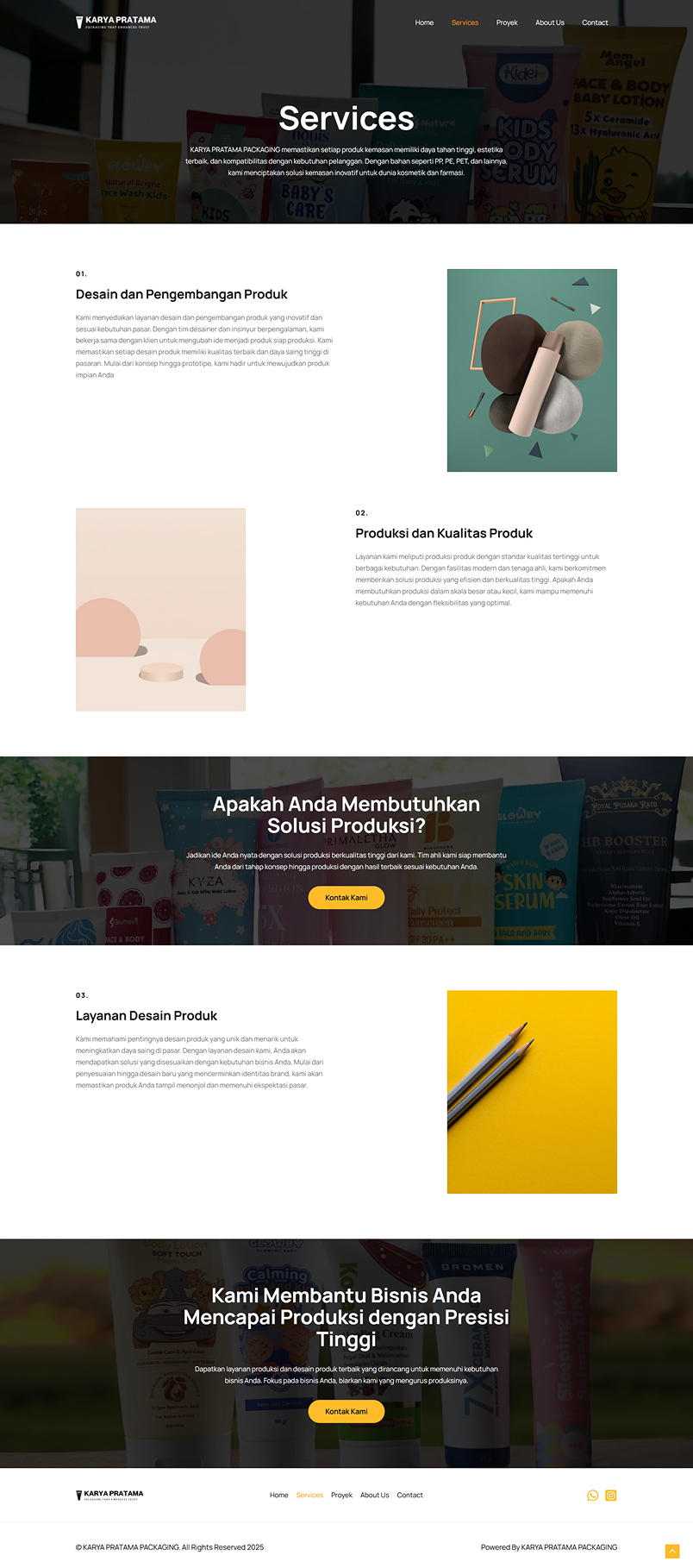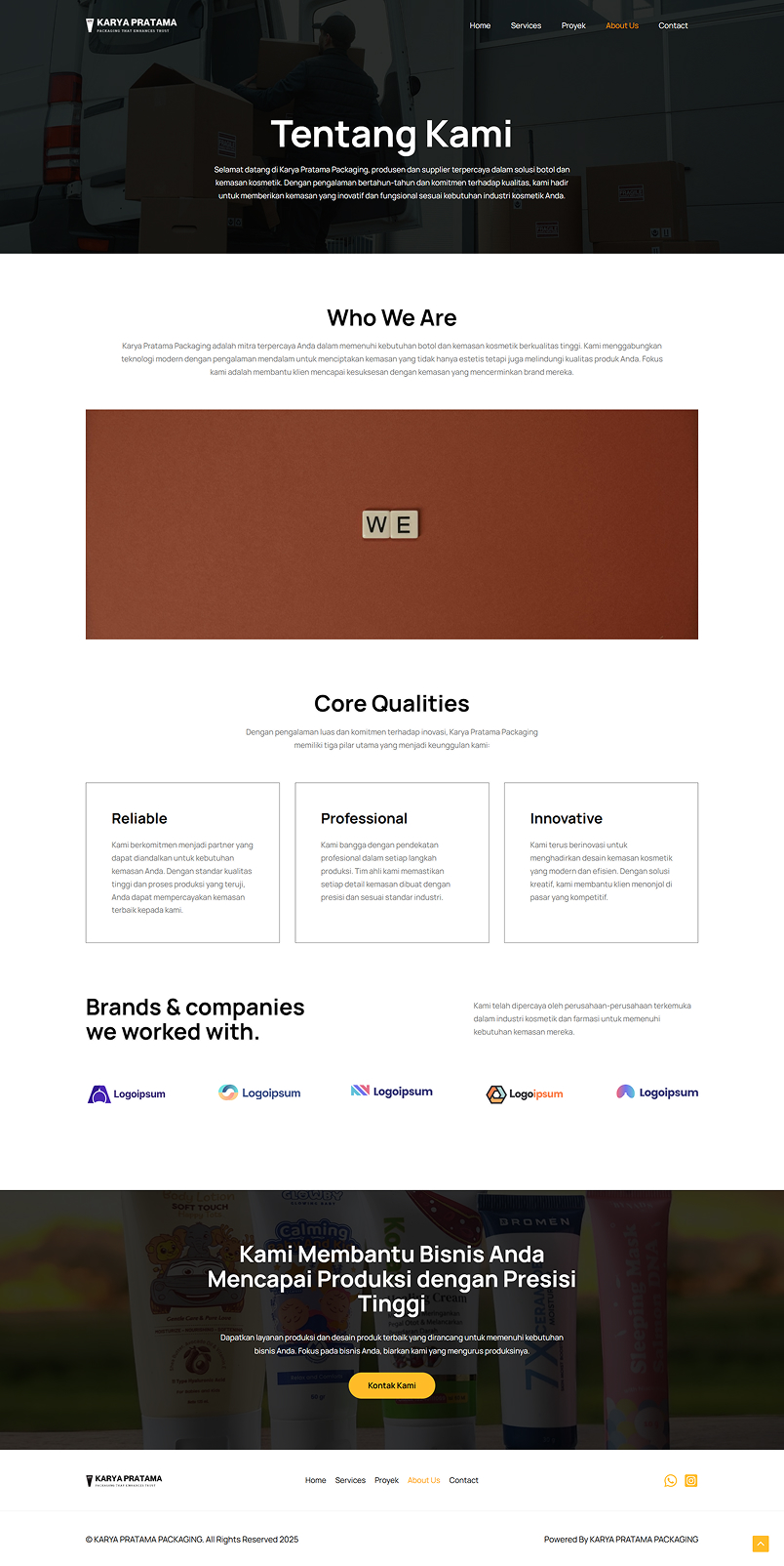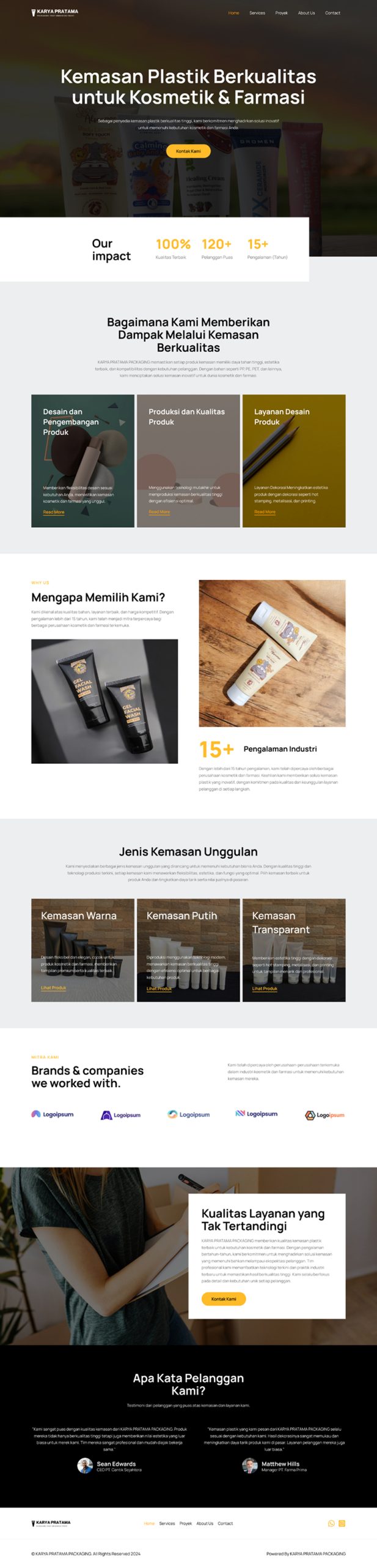 Karya Pratama Packaging (KPP) is a company profile website for a business providing plastic packaging solutions for cosmetic and skincare products. The goal was to create a simple, user-friendly, and professional-looking website that enhances the company’s online credibility.