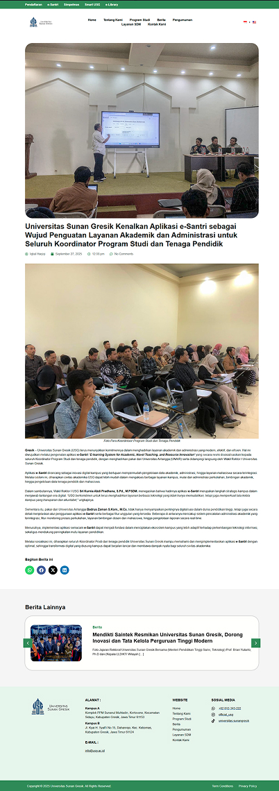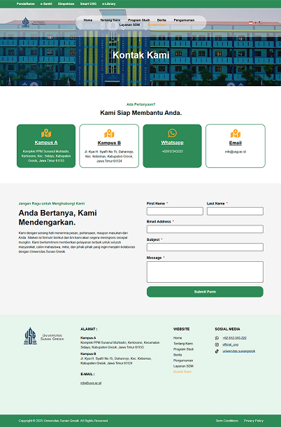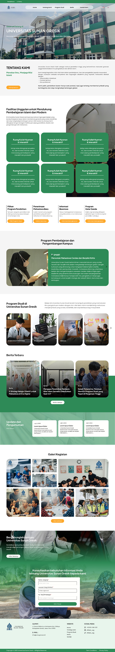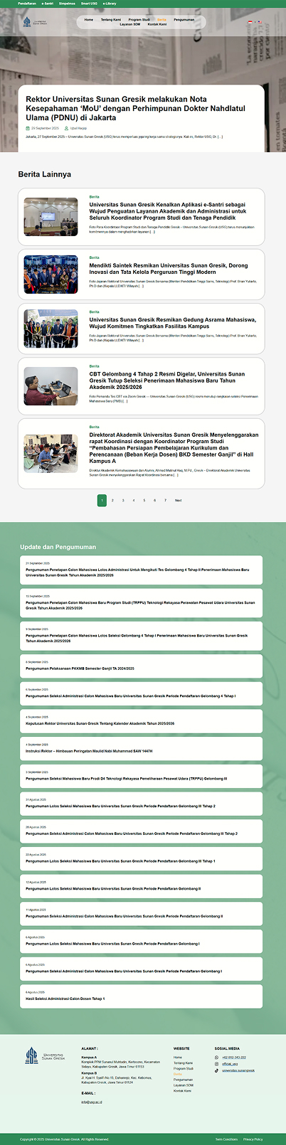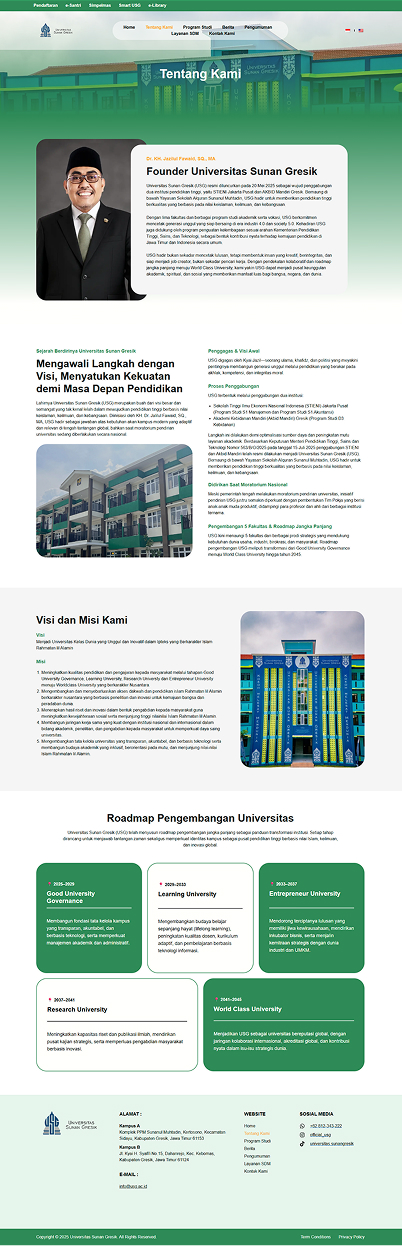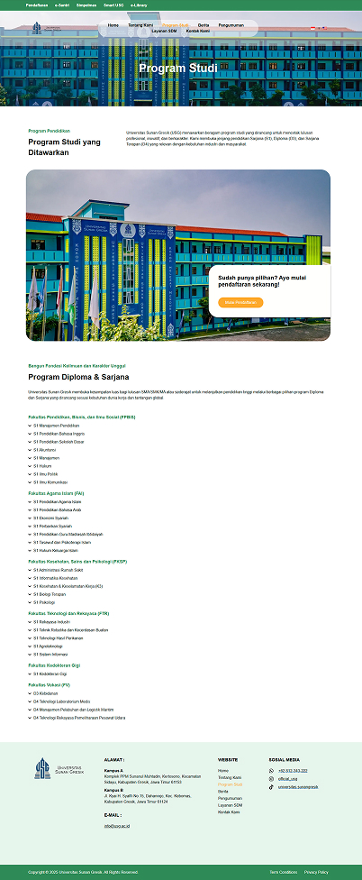 The redesign of usg.ac.id was aimed at transforming the university’s online presence into a modern, professional, and user-friendly academic website. The new design emphasizes improved usability, streamlined navigation for students and faculty, and secure infrastructure for administrative management.